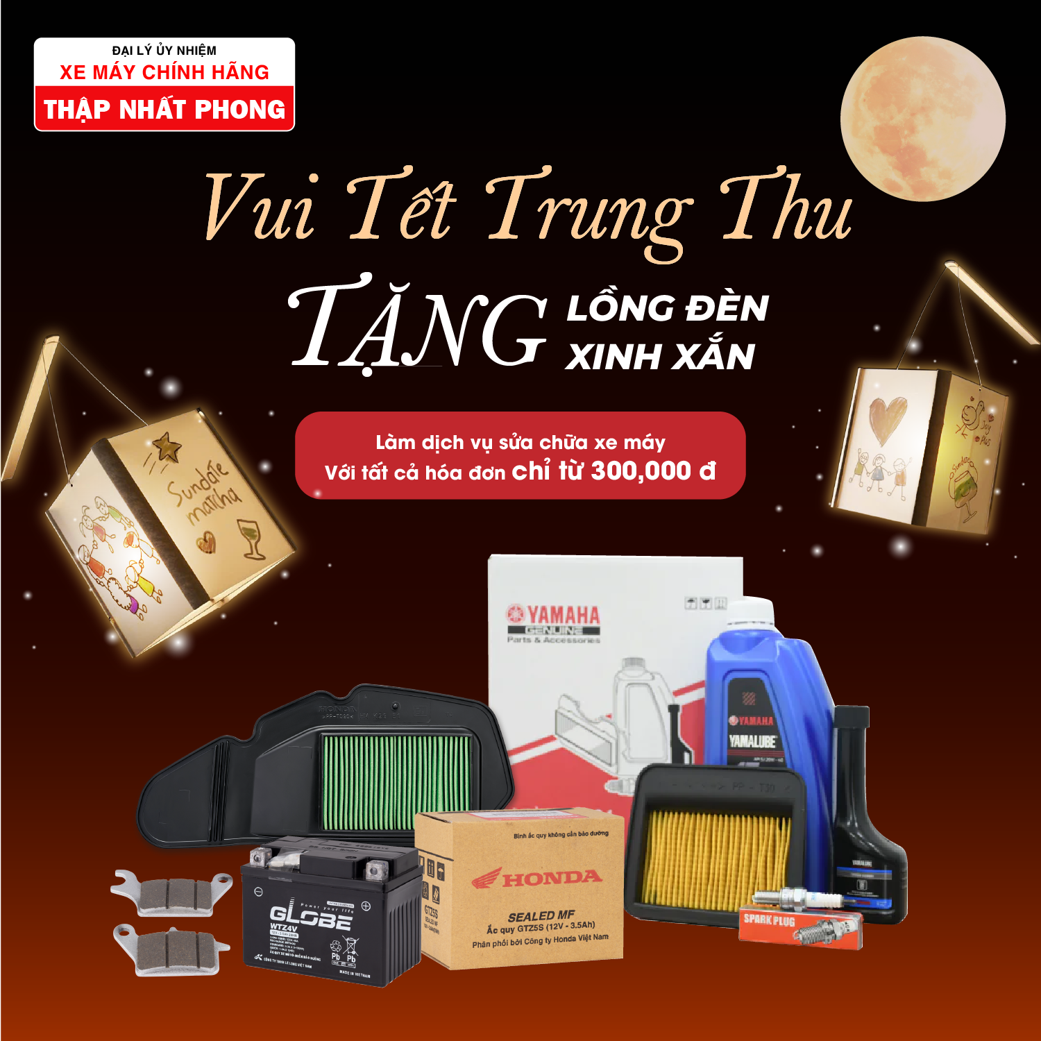 Chỉ cần mang xe máy đến làm dịch vụ sửa chữa với hóa đơn chỉ từ 300.000 đồng là bạn có thể mang về cho bé nhà mình một niềm vui, một ký ức rực rỡ là chiếc lồng đèn xinh xắn.
